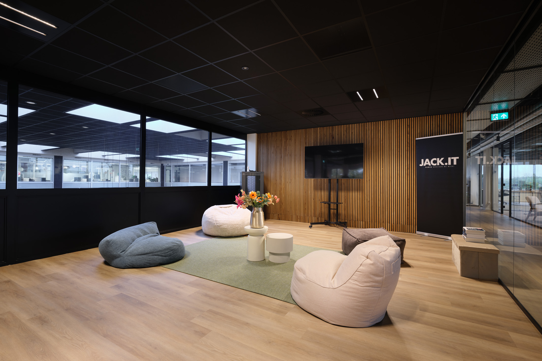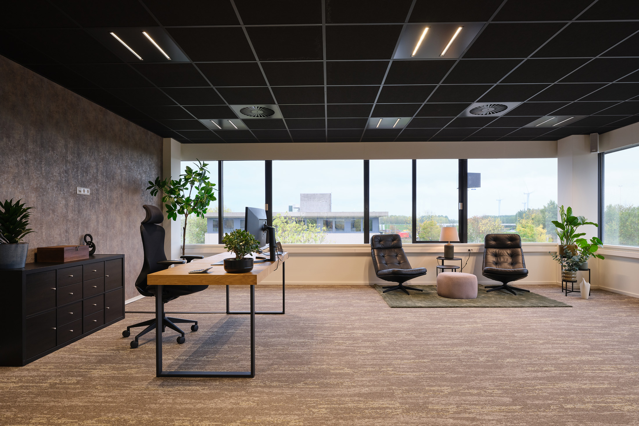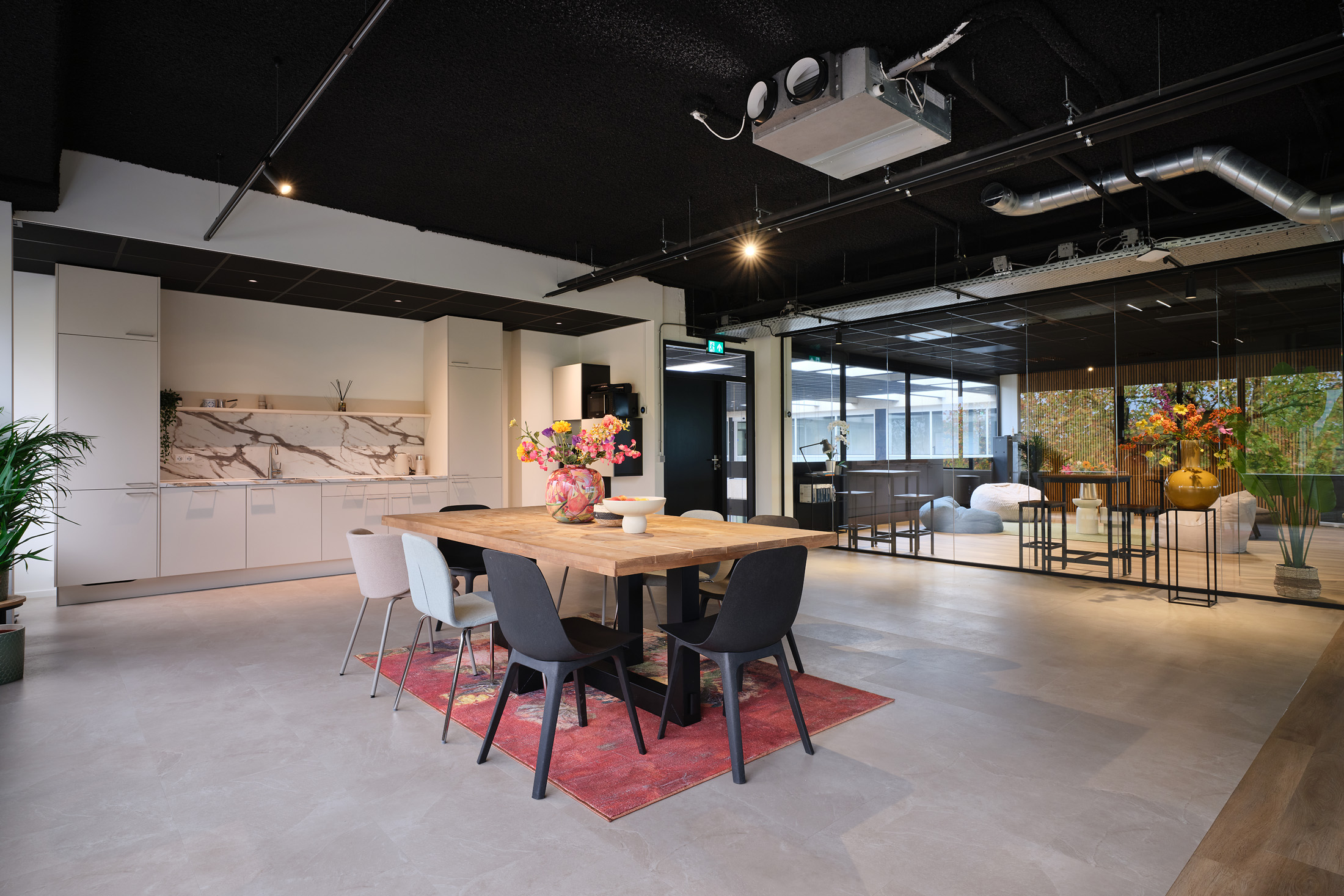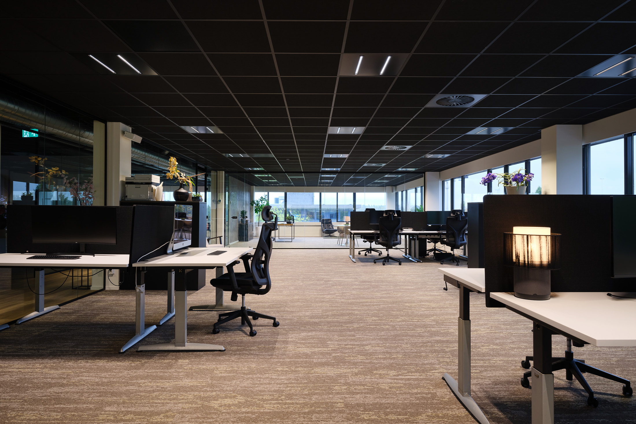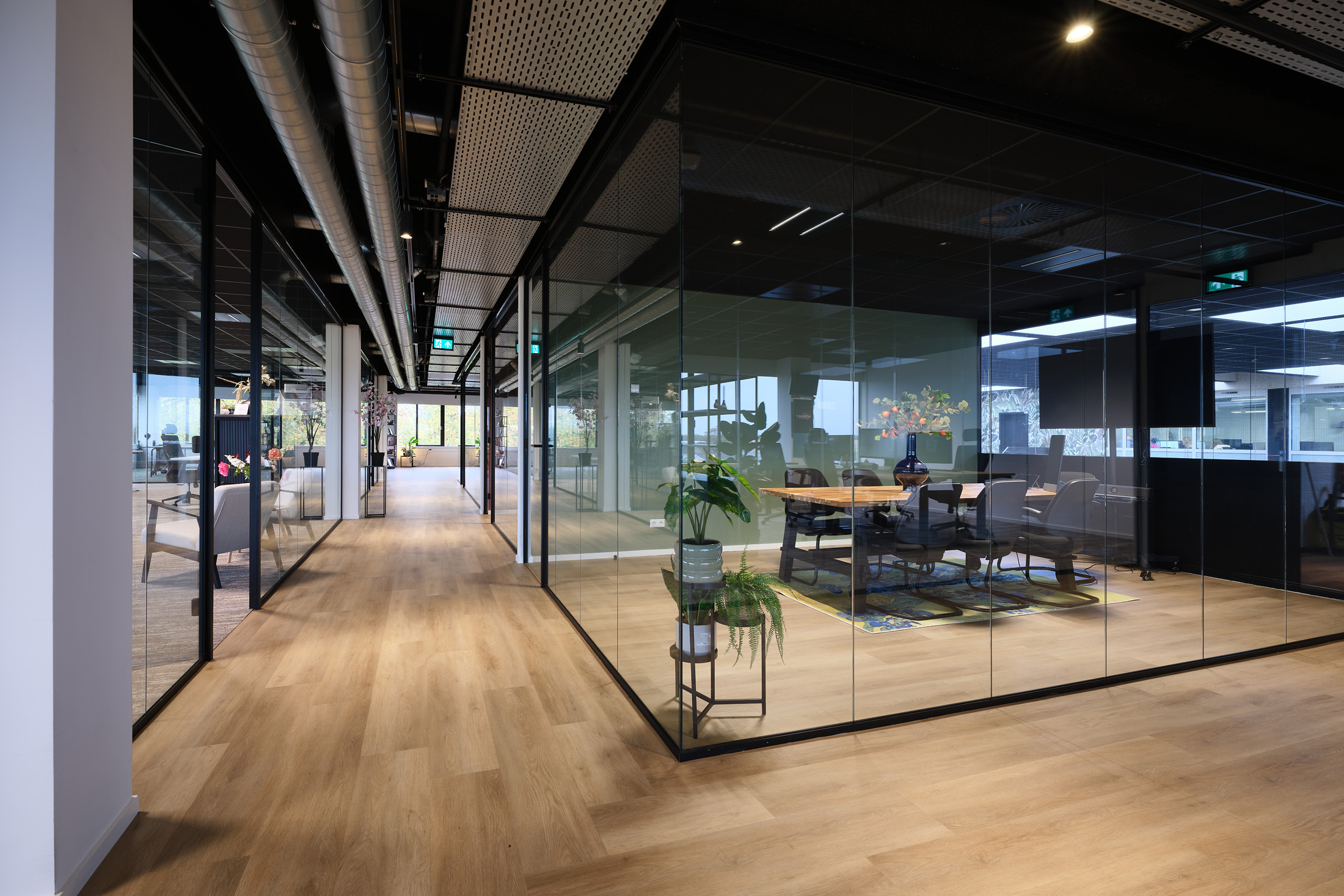 De huurder van de 2e verdieping kan gebruik maken van de faciliteiten op de begane grond, zoals de gemeenschappelijke vergaderruimten en de loungeplekken in de binnentuinen.