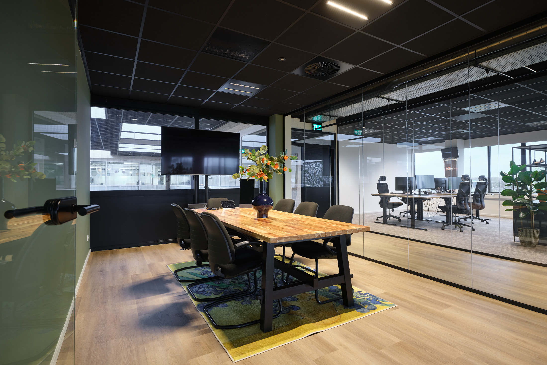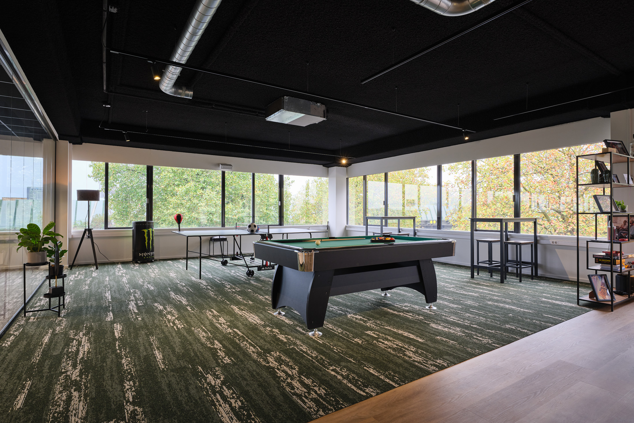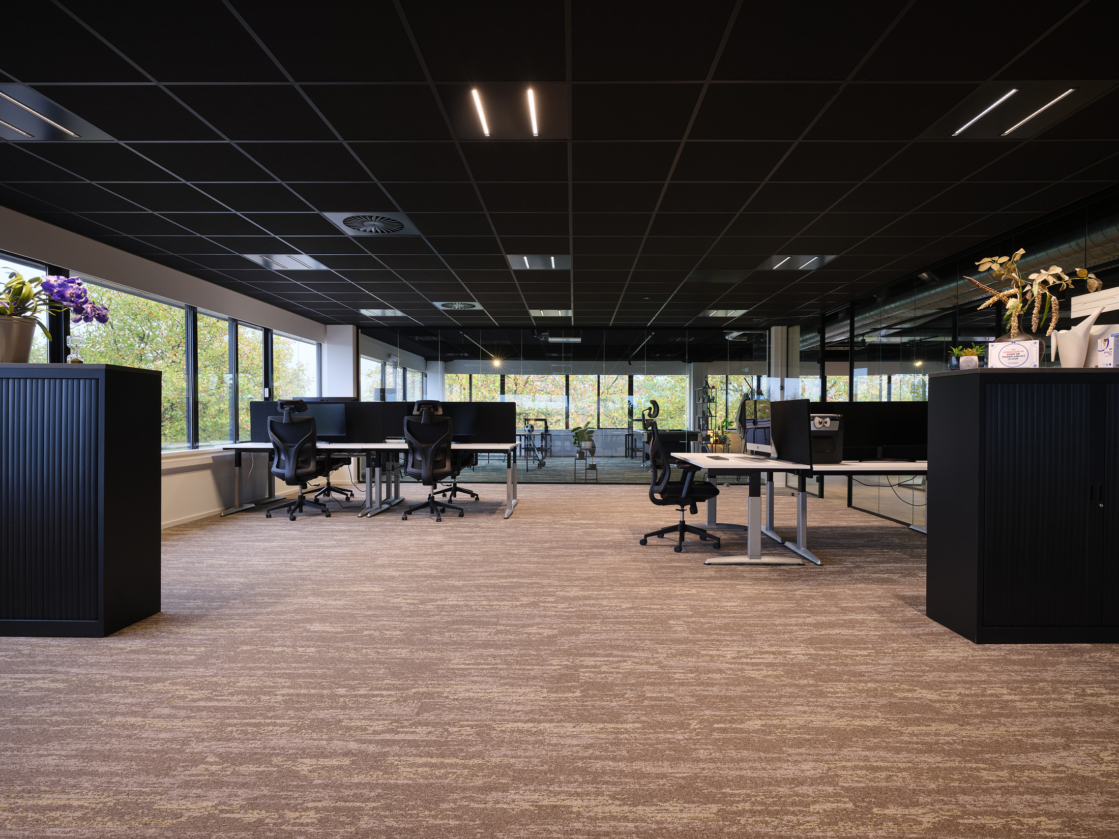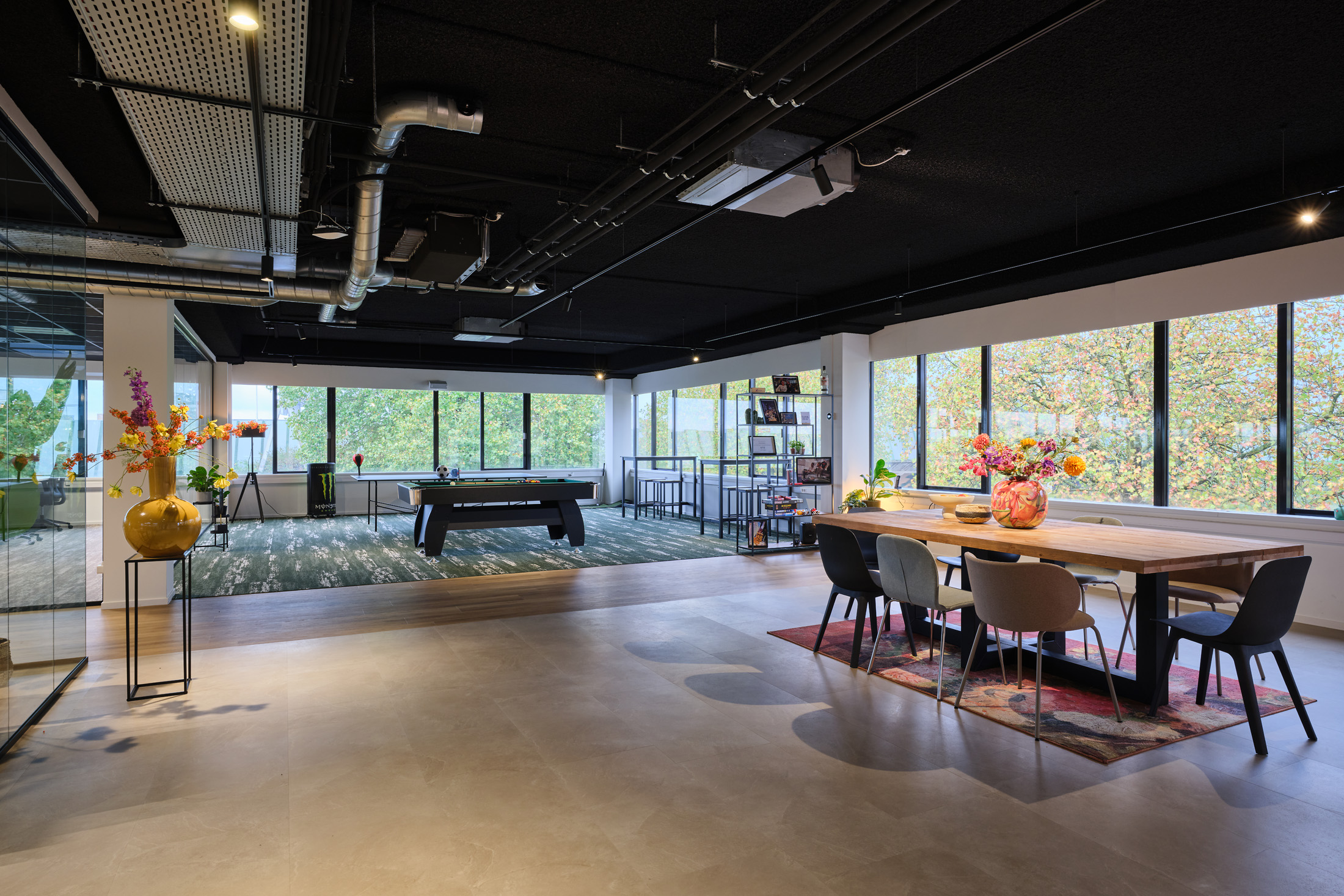 De huurder van de 2e verdieping kan gebruik maken van de faciliteiten op de begane grond, zoals de gemeenschappelijke vergaderruimten en de loungeplekken in de binnentuinen.