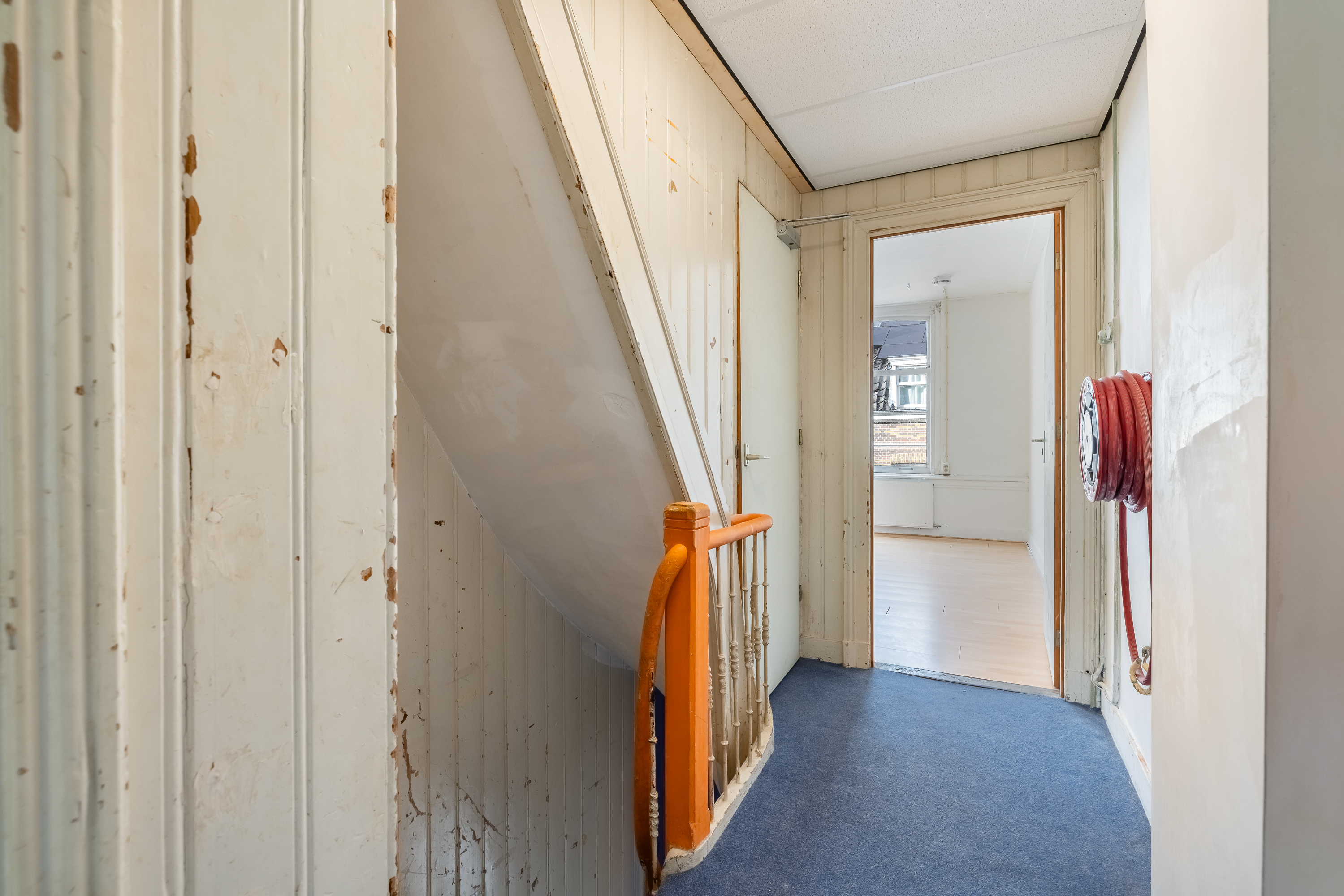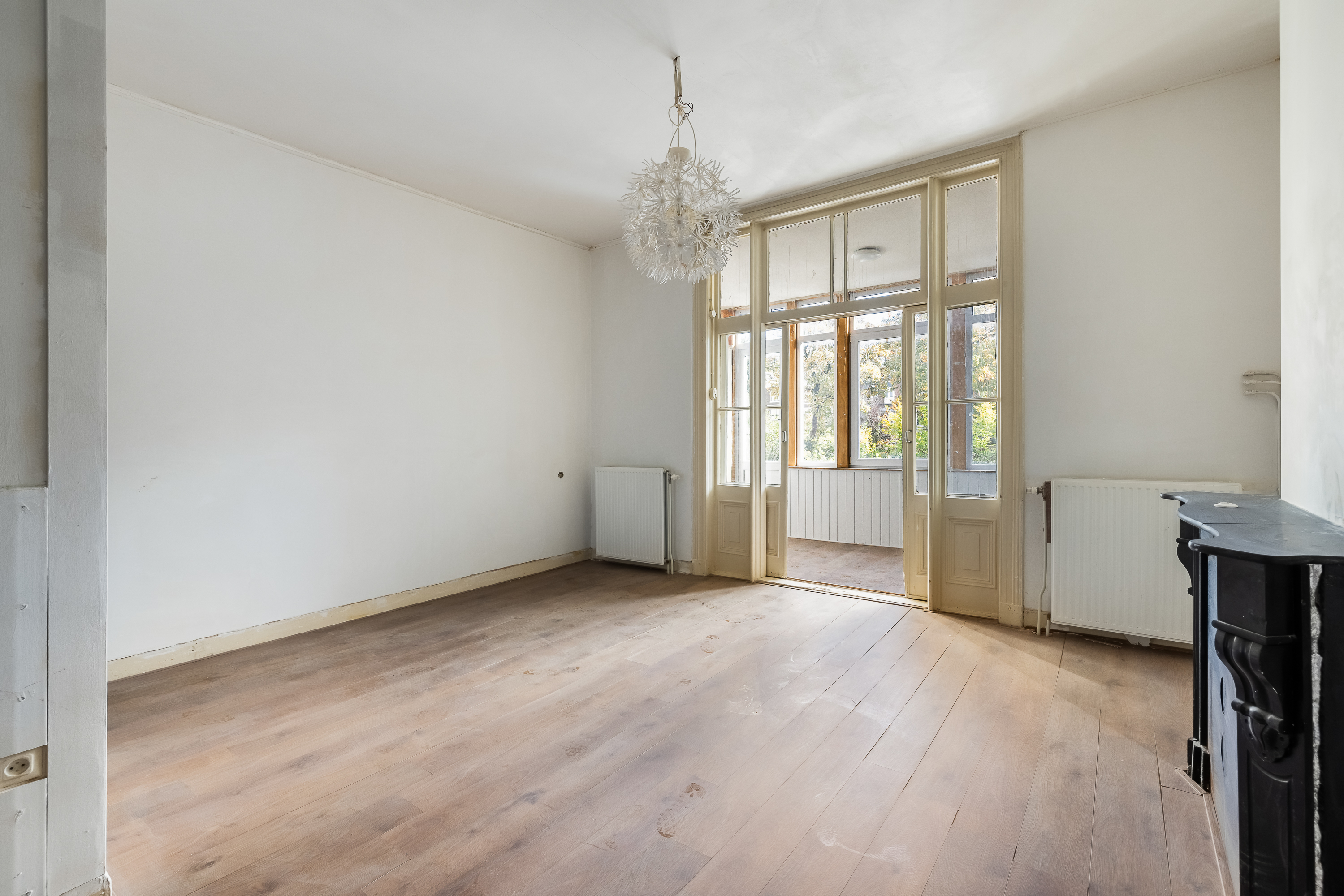 - De eerste verdieping voorzien van prachtige hoge plafonds (circa 3.00-3.25m) en sfeervolle details, zoals een schouw, originele tussendeuren.