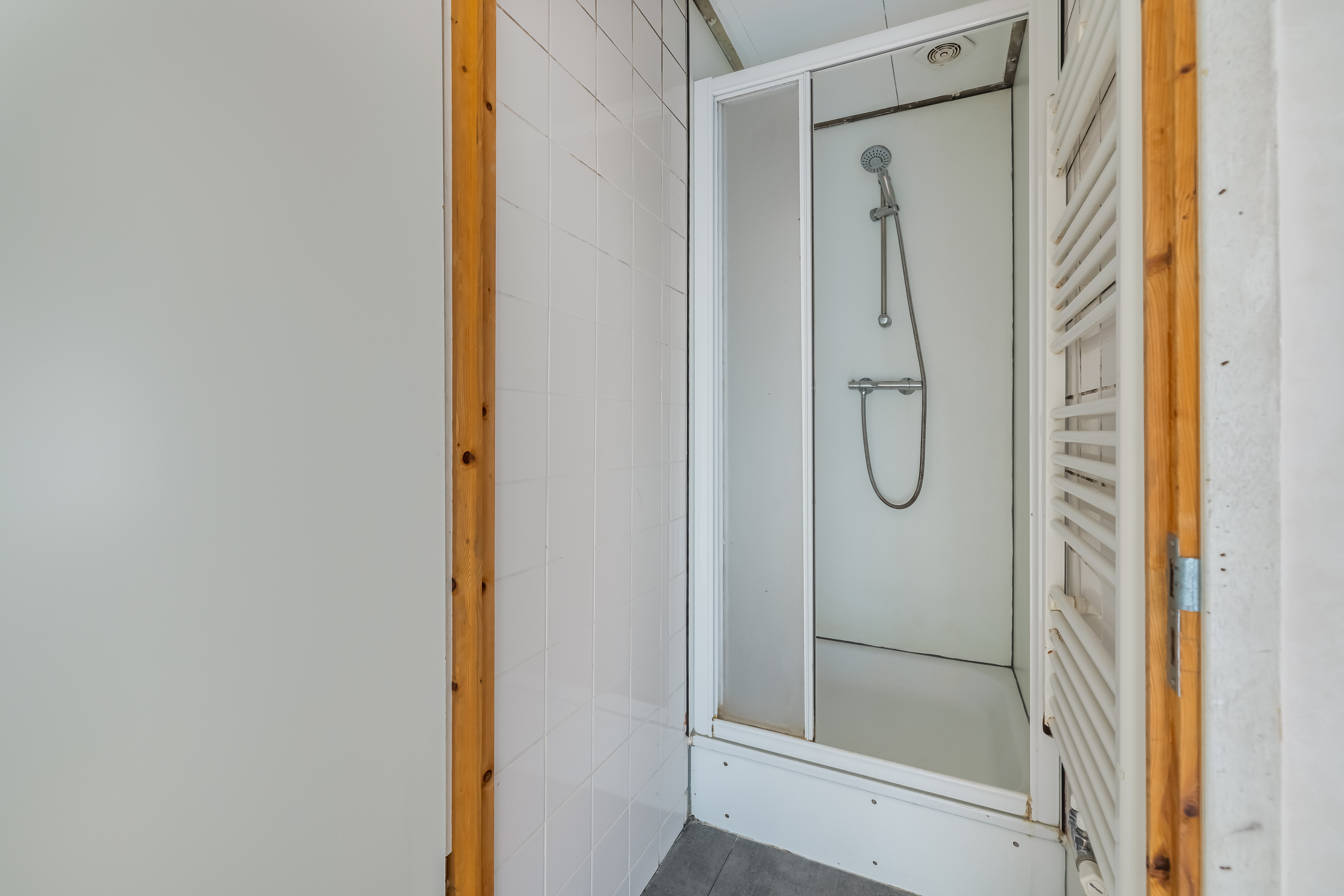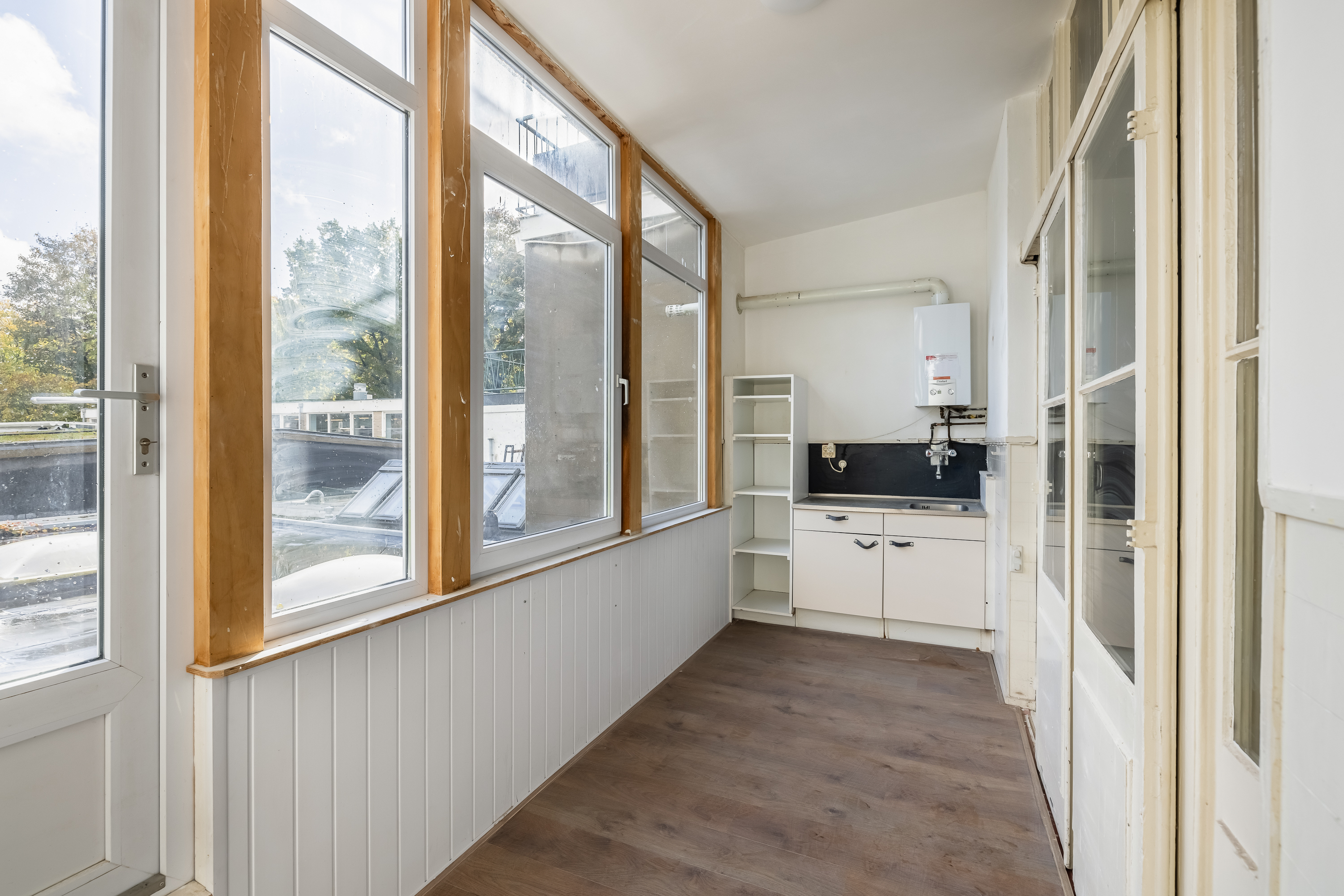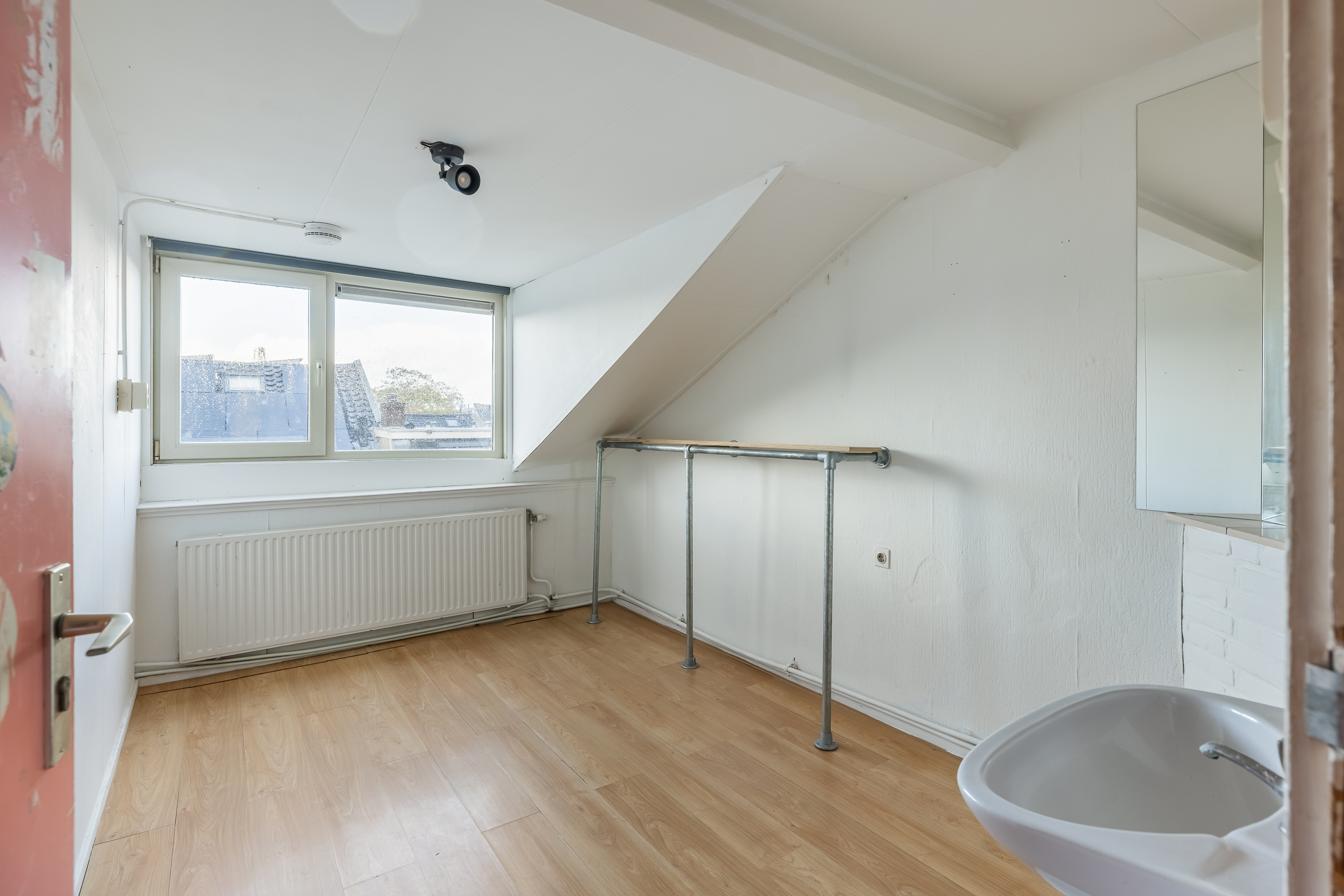 Via de overloop van de tweede verdieping is er toegang tot een separaat toilet, een keuken met een inloopdouche en een doorloop naar de slaapkamer aan de achterzijde. Aan de voorzijde is een prachtige kamer aanwezig met een grote inloop kast en een wastafel. Op deze verdieping is ook toegang, via zowel de achter (slaap-)kamer als de keuken, tot een balkon van circa 11m2, gelegen op het zuidoosten.