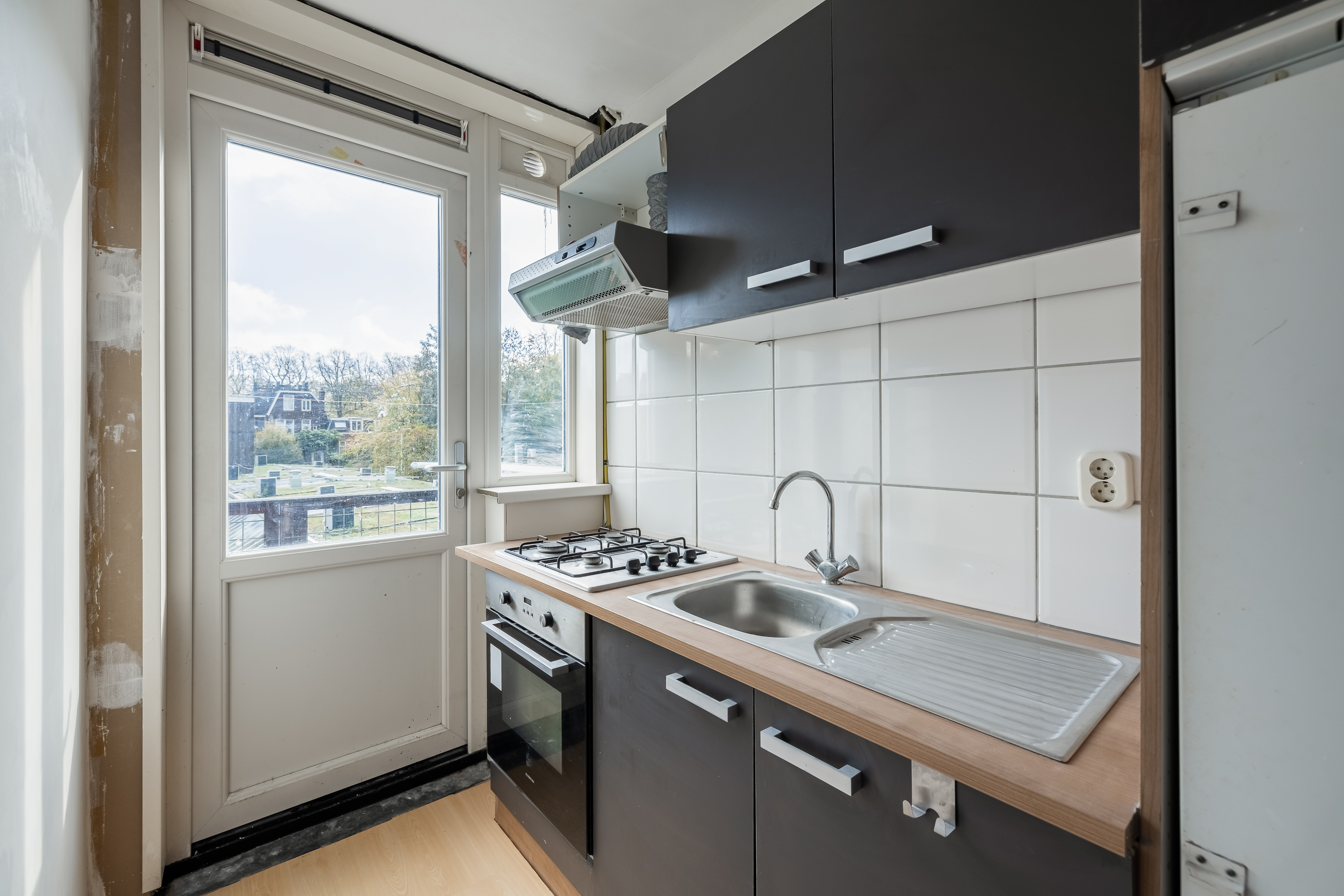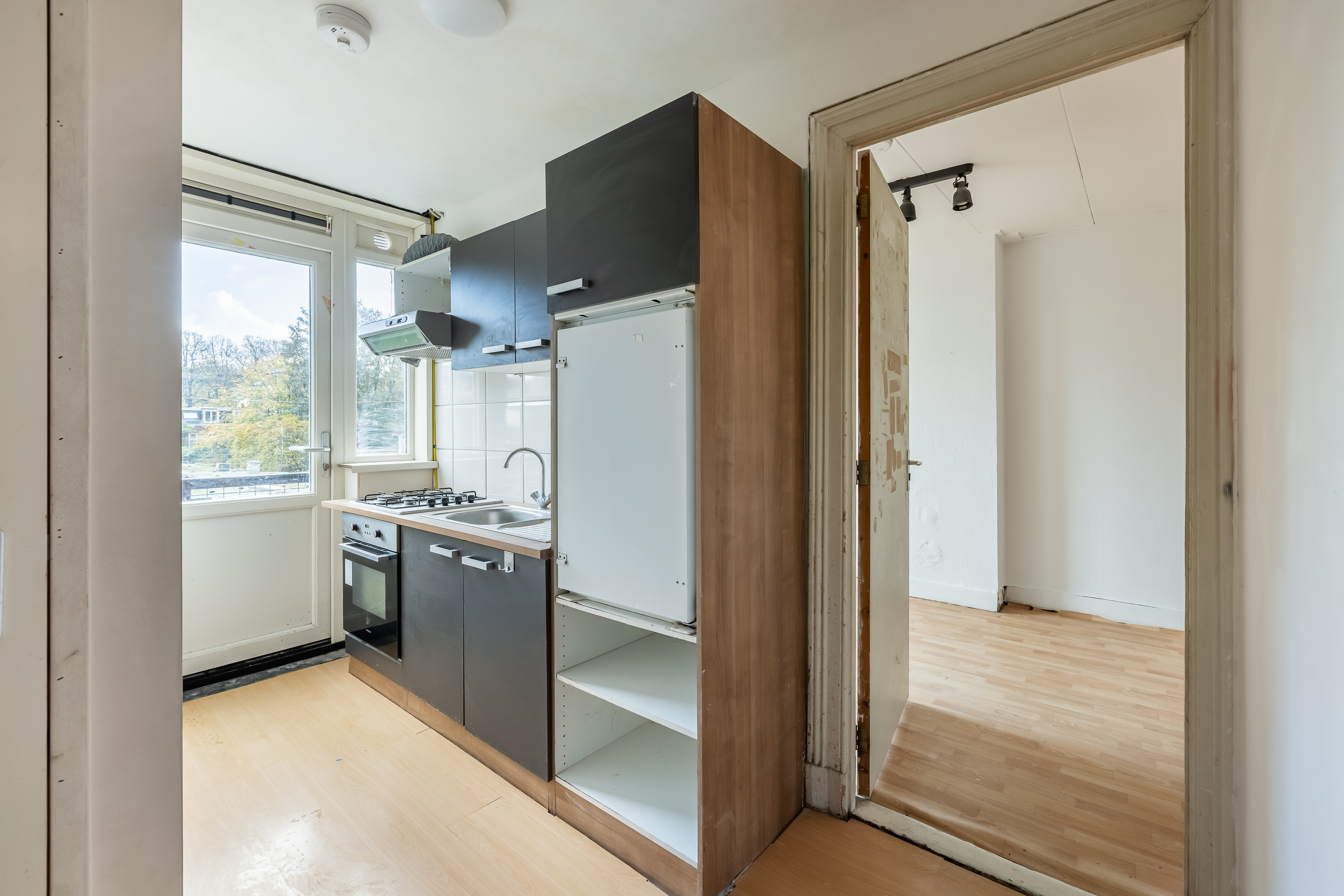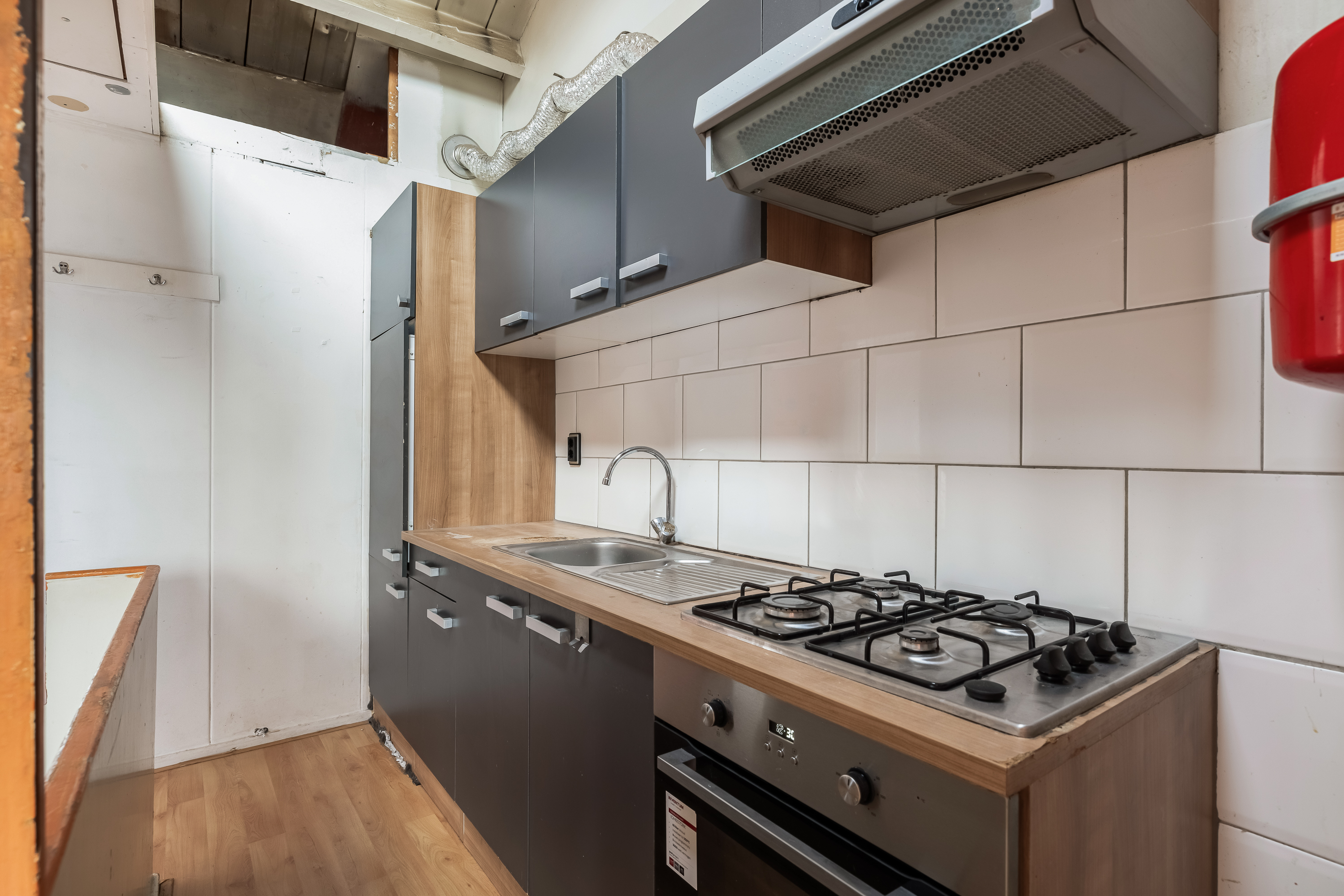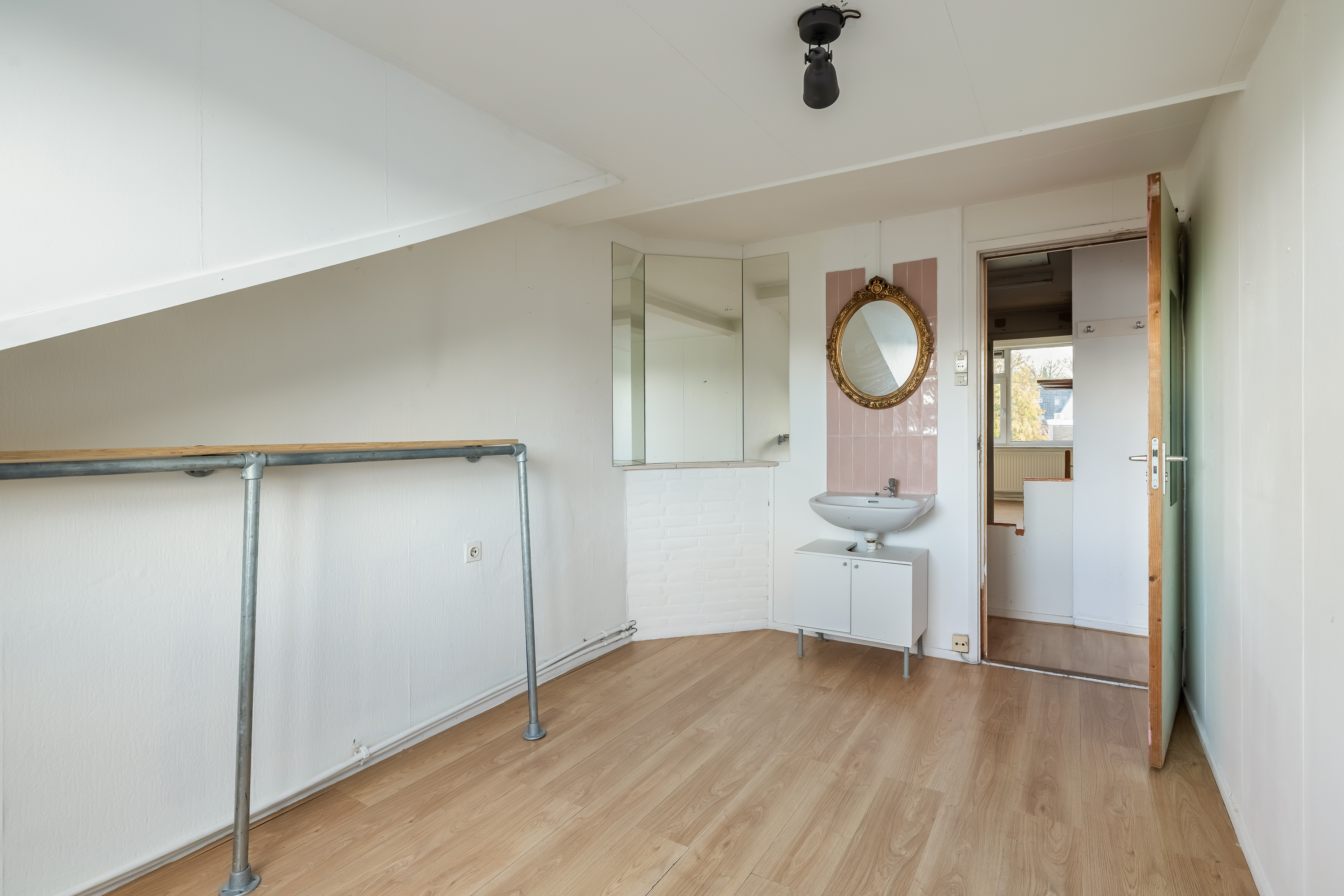 Via de overloop van de tweede verdieping is er toegang tot een separaat toilet, een keuken met een inloopdouche en een doorloop naar de slaapkamer aan de achterzijde. Aan de voorzijde is een prachtige kamer aanwezig met een grote inloop kast en een wastafel. Op deze verdieping is ook toegang, via zowel de achter (slaap-)kamer als de keuken, tot een balkon van circa 11m2, gelegen op het zuidoosten.